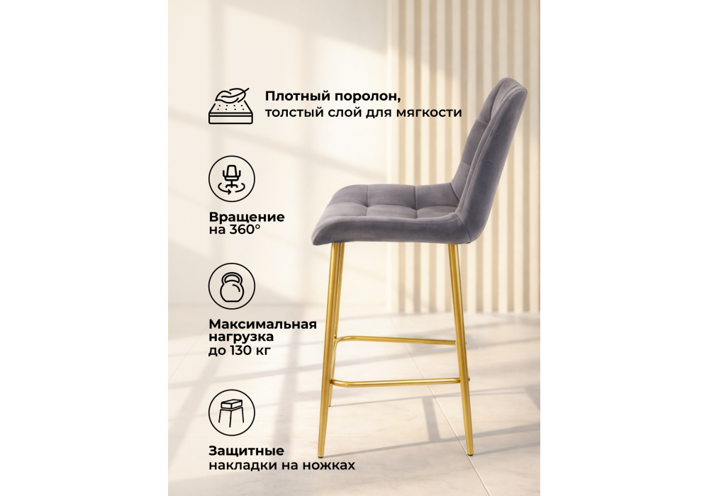 Барный стул поворотный Woodville Челси 360 темно-серый (zd 995) / золотой np 632553 в Калининграде