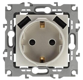 Розетка ЭРА Intro Solo Schuko P+E 16A 250V со шторками 2хUSB шампань 12-4109-04 Б0047843