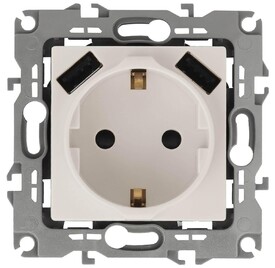 Розетка ЭРА Intro Solo Schuko P+E 16A 250V со шторками 2хUSB слоновая кость 12-4109-02 Б0047841