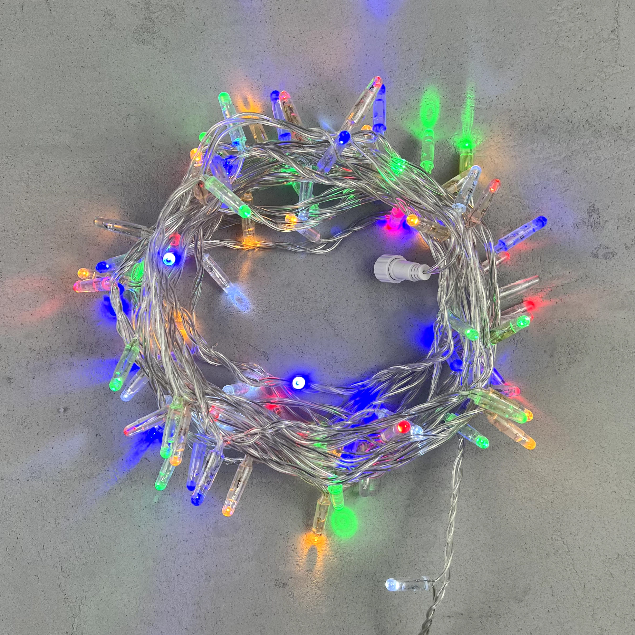 Купить "Гирлянда Нить с Колпачком 10м Разноцветная с Мерцанием Белого Диода 24В, 100 LED, Провод Прозрачный ПВХ, IP65 LTC PST100BLWCAP-10-1M"