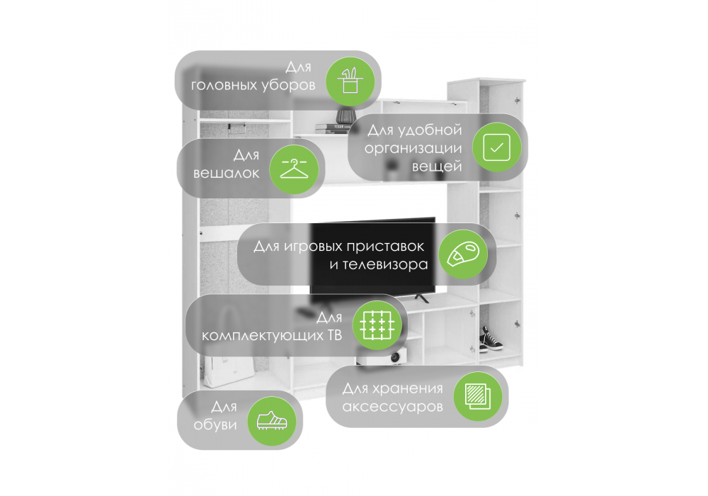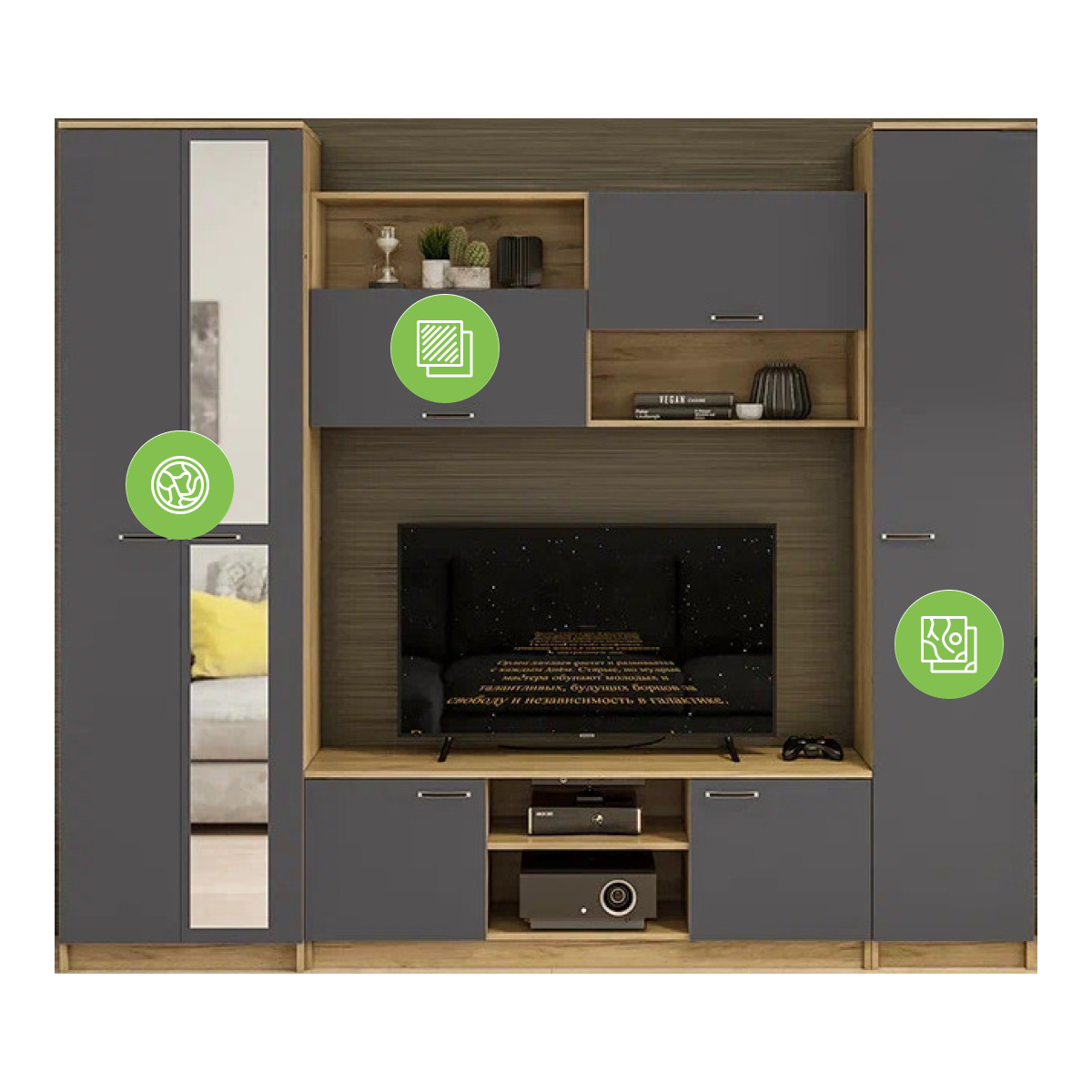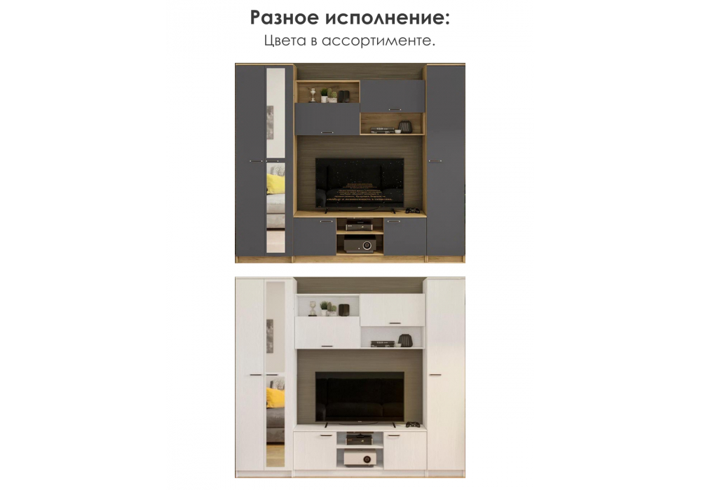 Купить "Готовая гостиная Woodville Бертелена дуб крафт серый / серый графит 508418"