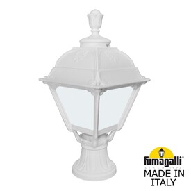 Ландшафтные фонари FUMAGALLI серии CEFA, модель CEFA/MIKROLOT. Столбик малый MIKROLOT с уличным фонарем CEFA. Используются для архитектурного и ландшафтного освещения в стиле "классика". Место установки уличных светильников - перила лестниц, столбы заборов, колонны, тумбы, подпорные стенки, стилобаты, ландшафтные композиции в парках и скверах. В общем, там, где светильник находится на каком-то возвышении, тумбе или подиуме. Изготовлены в Италии, по уникальным технологиям "FUMAGALLI" из современного композитного полимера RESIN. Этот материал в 5 раз прочнее металла, не ржавеет, не окисляется, не выгорает на солнце, его не нужно красить. Все светильники пыле-влаго защищены по стандарту IP55 (Пылезащищенные, защита от водяных струй с любого направления). В комплекте идут крепежи и закладные элементы. Рассеиватель выполнен из антивандального, не мутнеющего и не горючего PMMA (ПолиМетилМетаАкрилат). Срок службы светильника - не менее 20 лет. Температура использования от -60 до +90. В серии CEFA есть фонари в настенном (BISSO/CEFA, OFIR/CEFA, MIRRA/CEFA, PORPORA/CEFA) подвесном (SICHEM/CEFA) и наземном исполнении (MINILOT/CEFA, MIZAR.R/CEFA, IAFAET.R/CEFA, ALOE.R/CEFA, ARTU/CEFA, GIGI/CEFA, RICU/CEFA, RICU/ISSO/CEFA 2L, NEBO/CEFA, NEBO OFIR/CEFA 2L, NEBO OFIR/CEFA 3L) со столбами разной высоты, с разным количеством и конфигурацией голов. Консоли настенных фонарей и кронштейны светильников на столбах освщения могут устанавливаться вверх/вниз. Столбы выше 150 см имеют в основе мощную стальную трубу с двойной оцинковкой. При заказе требуется выбрать цвет корпуса, цвет плафона и тип патрона. По стилю и дизайну серия уличных светильников CEFA похожа на светильники большого размера SIMON и на светильники очень большого размера (Гранд) PIETRO. По размеру CEFA относится к средним светильникам как серия RUT, SALEM и GLOBE 300.