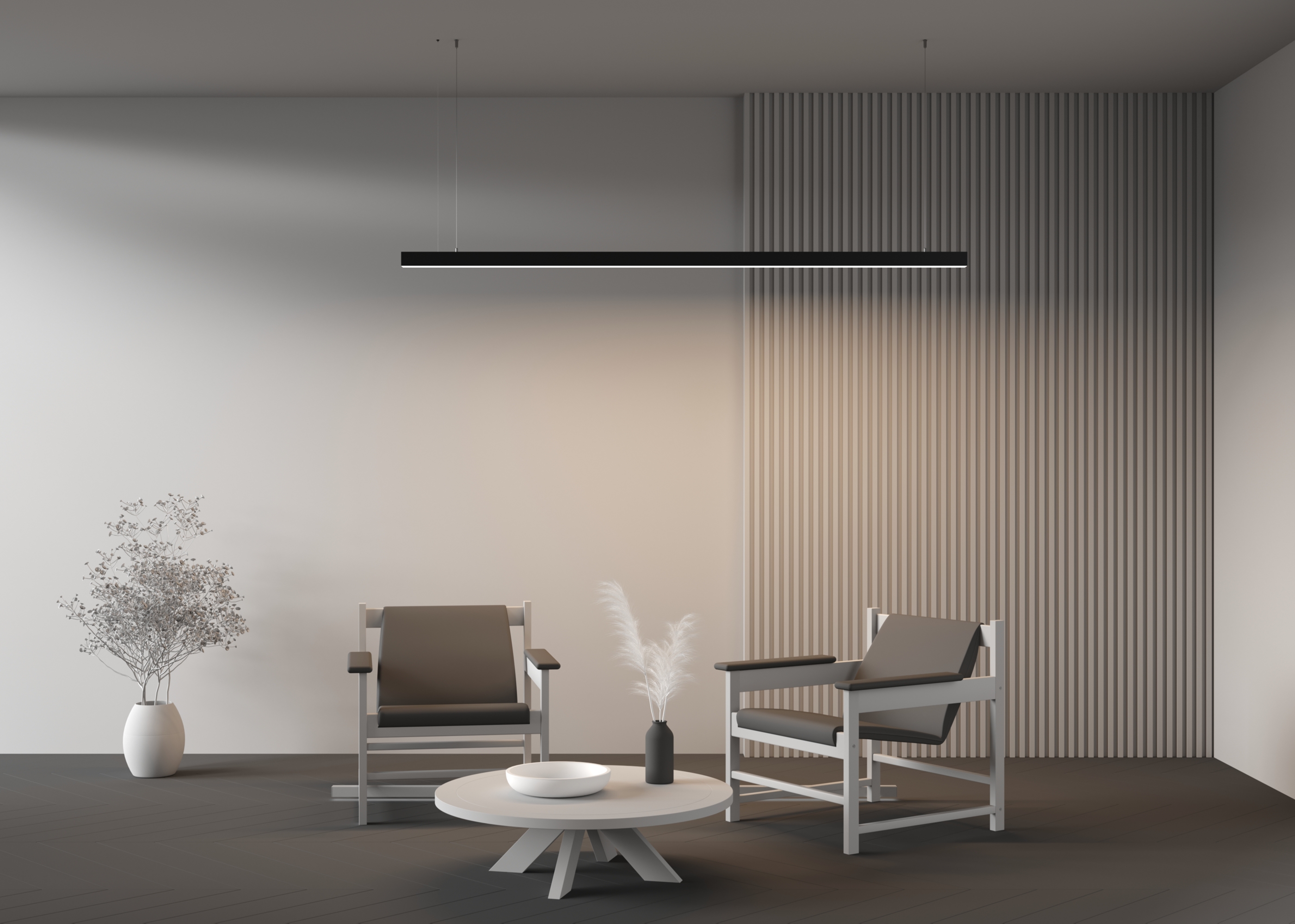 Подвесные линейные светильники?Это несколько изделий с уникальными чертами, в одном стиле и цветовой гамме.