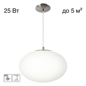 На белом основании высотой 12мм из высокопрочного полимера располагается белый матовый плафон-сфера диаметром 25см, изготовленный из специализированного оптического полимера. Удобный выключатель располагается на проводе.