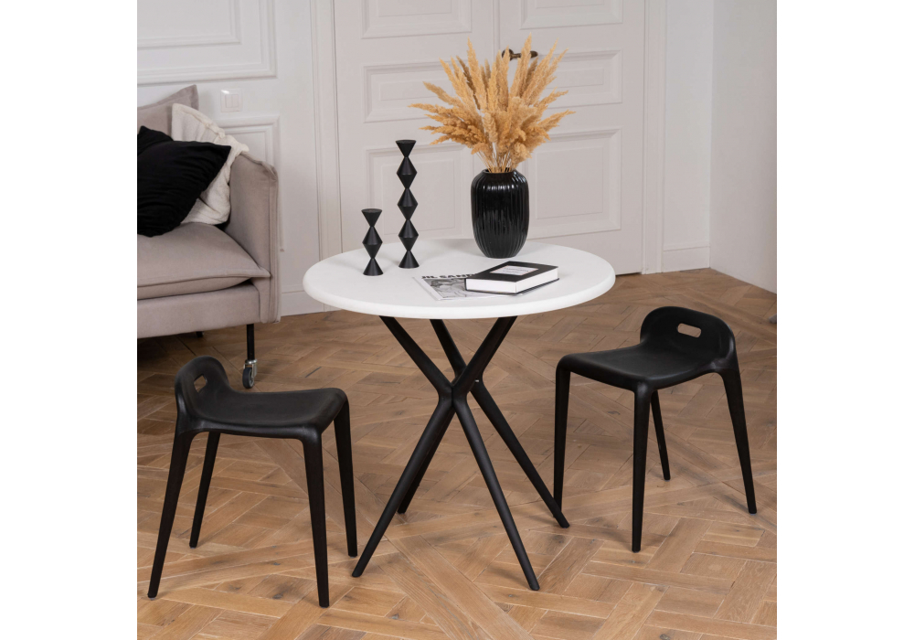 Материал каркаса - Пластик; Материал сиденья - Пластик; Материал ножек - Пластик; Цвет каркаса - Черный; Цвет сиденья - Черный; Цвет ножек - Черный; Ширина - 38; Глубина - 40; Высота - 56; Ширина сиденья - 30; Глубина сиденья - 31; Высота сиденья - 46