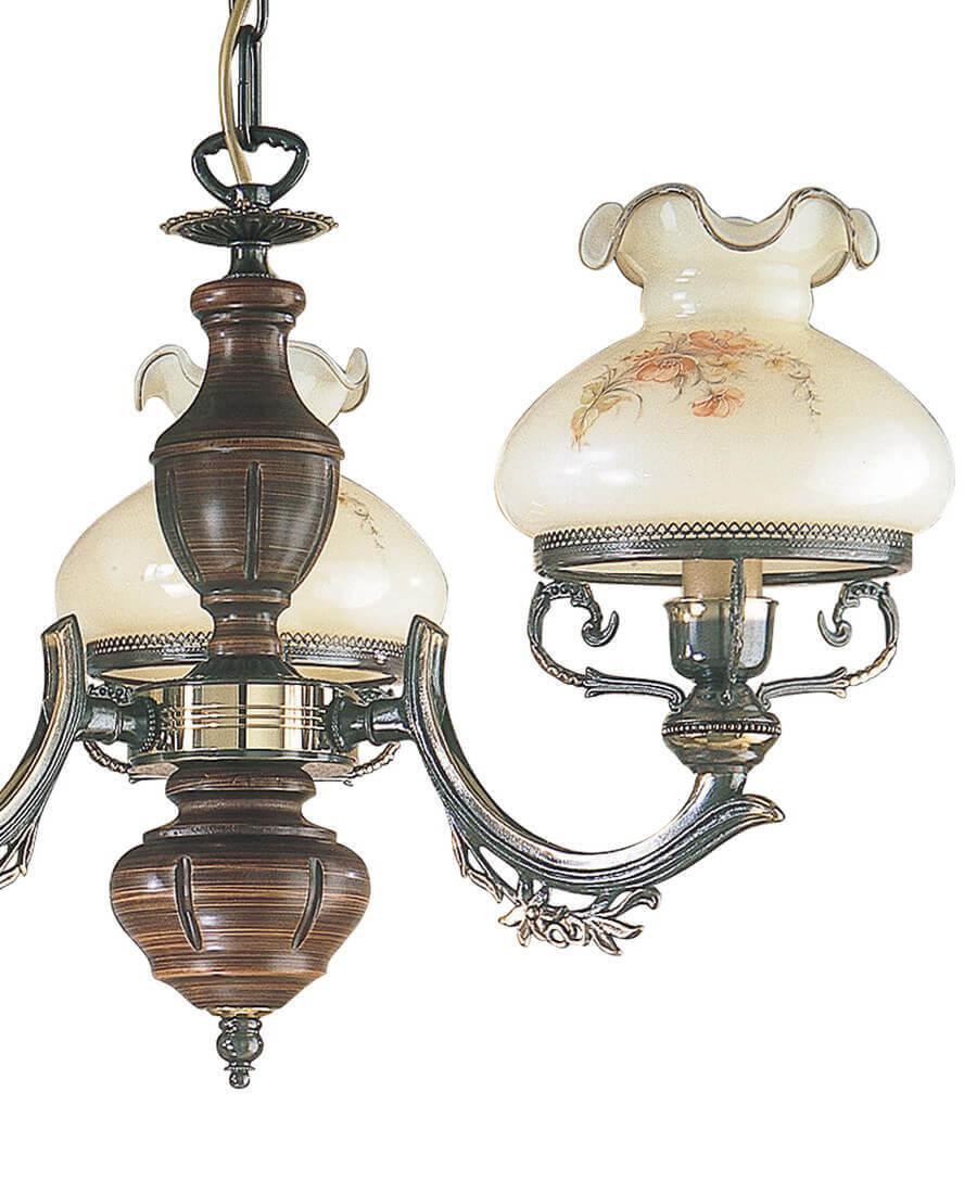 Подвесная люстра Reccagni Angelo L 2812/3 Итальянского производсва – лучшее соотношение цена-качество. Этот светильник Классического стиля хорошо подойдет Для спальни и придаст помещению мягкий и приятный свет. Плафоны белые из стекла. Арматура бронза из металла. Кол-во ламп - 3шт. Общая мощность 180W