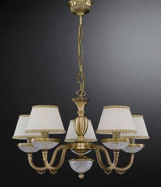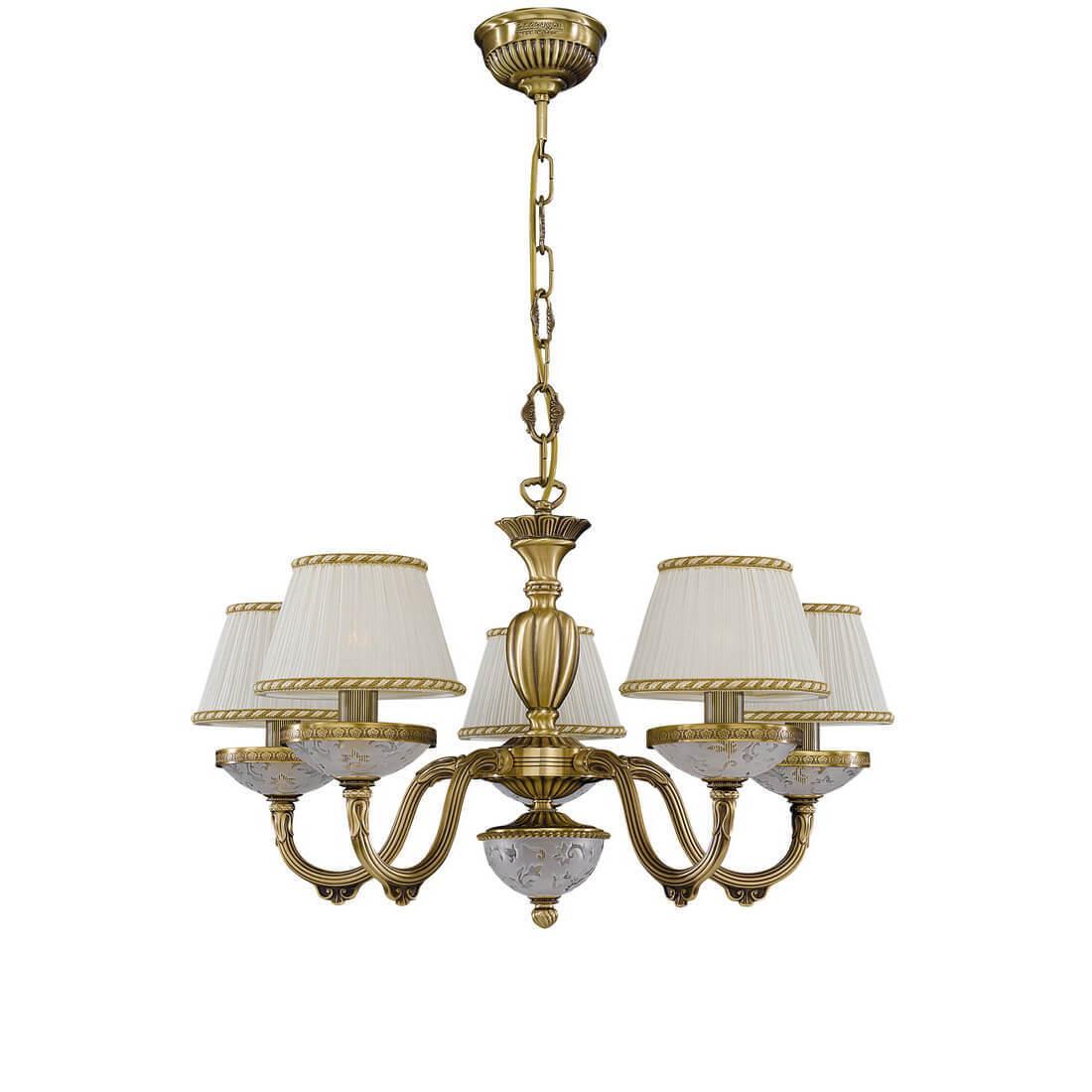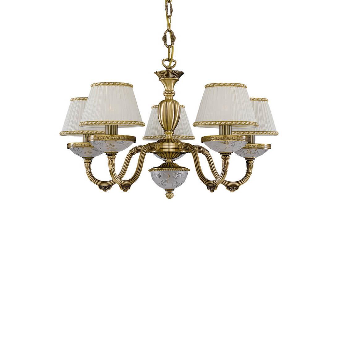 Подвесная люстра Reccagni Angelo L 6402/5 Итальянского производсва – лучшее соотношение цена-качество. Этот светильник Классического стиля хорошо подойдет Для спальни и придаст помещению мягкий и приятный свет. Плафоны белые из ткани. Арматура бронза из металла. Кол-во ламп - 5шт. Общая мощность 300W