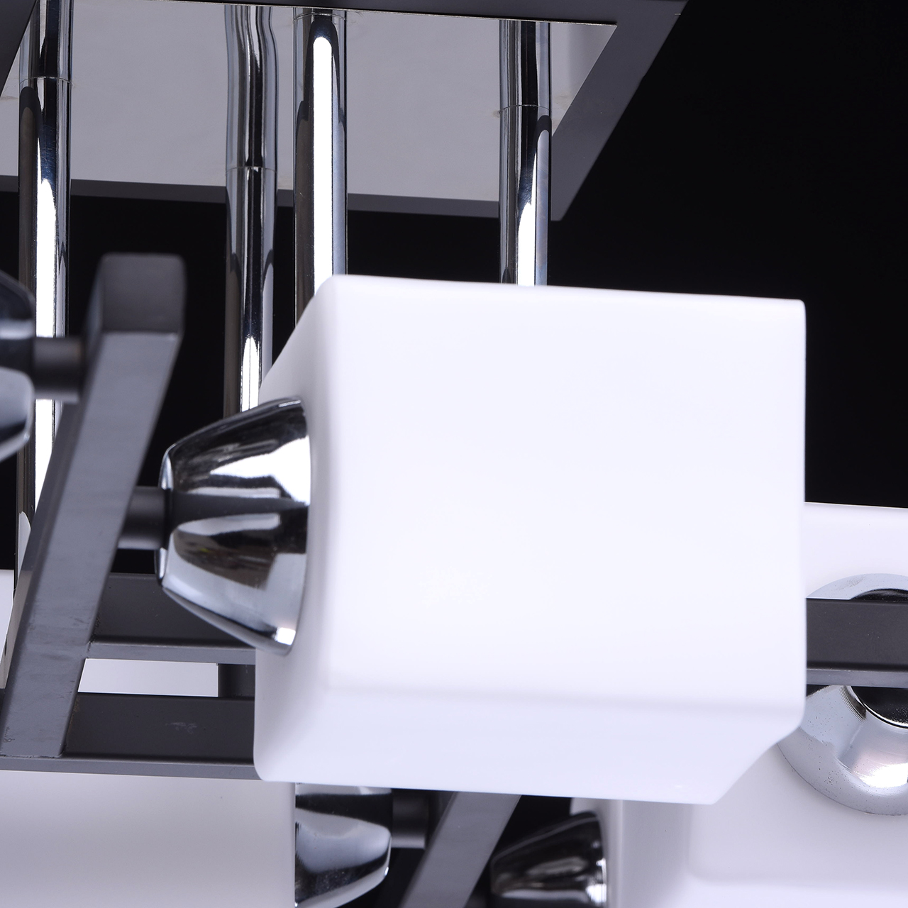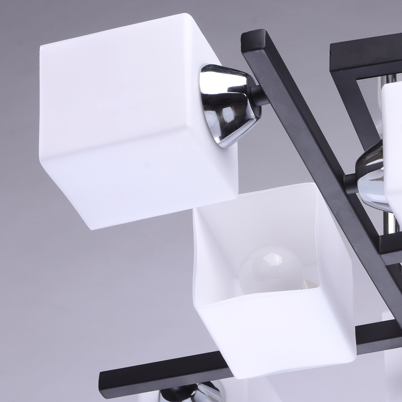 Четкие линии и острые углы, сочетание металла и стекла делают дизайнерский светильник De City Тетро довольно строгим, а разнонаправленные плафоны позволяют ярко освещать каждый уголок гостиной, кухни, спальни или другого помещения в доме.