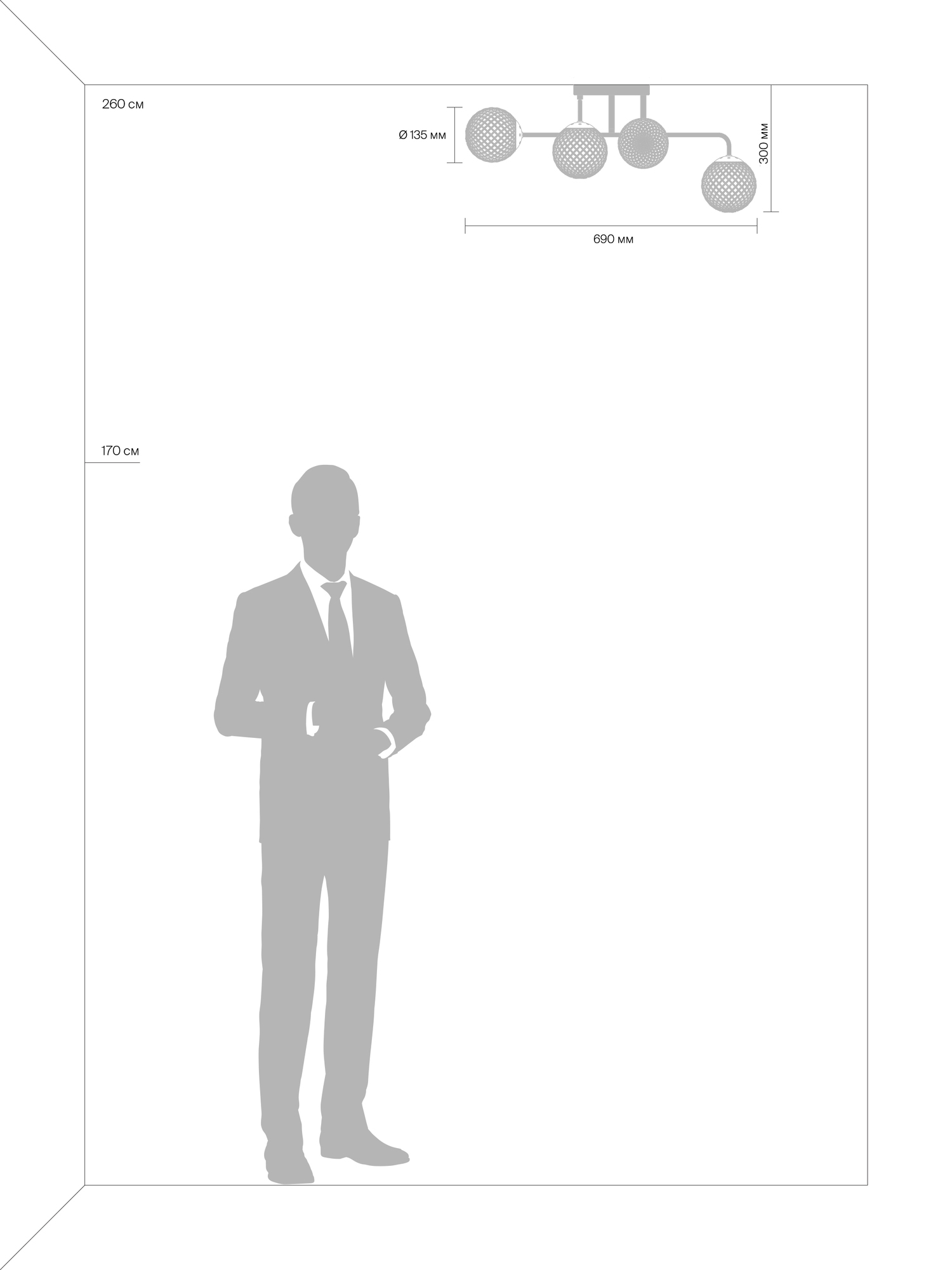 - Диаметр плафона (абажура): 135
