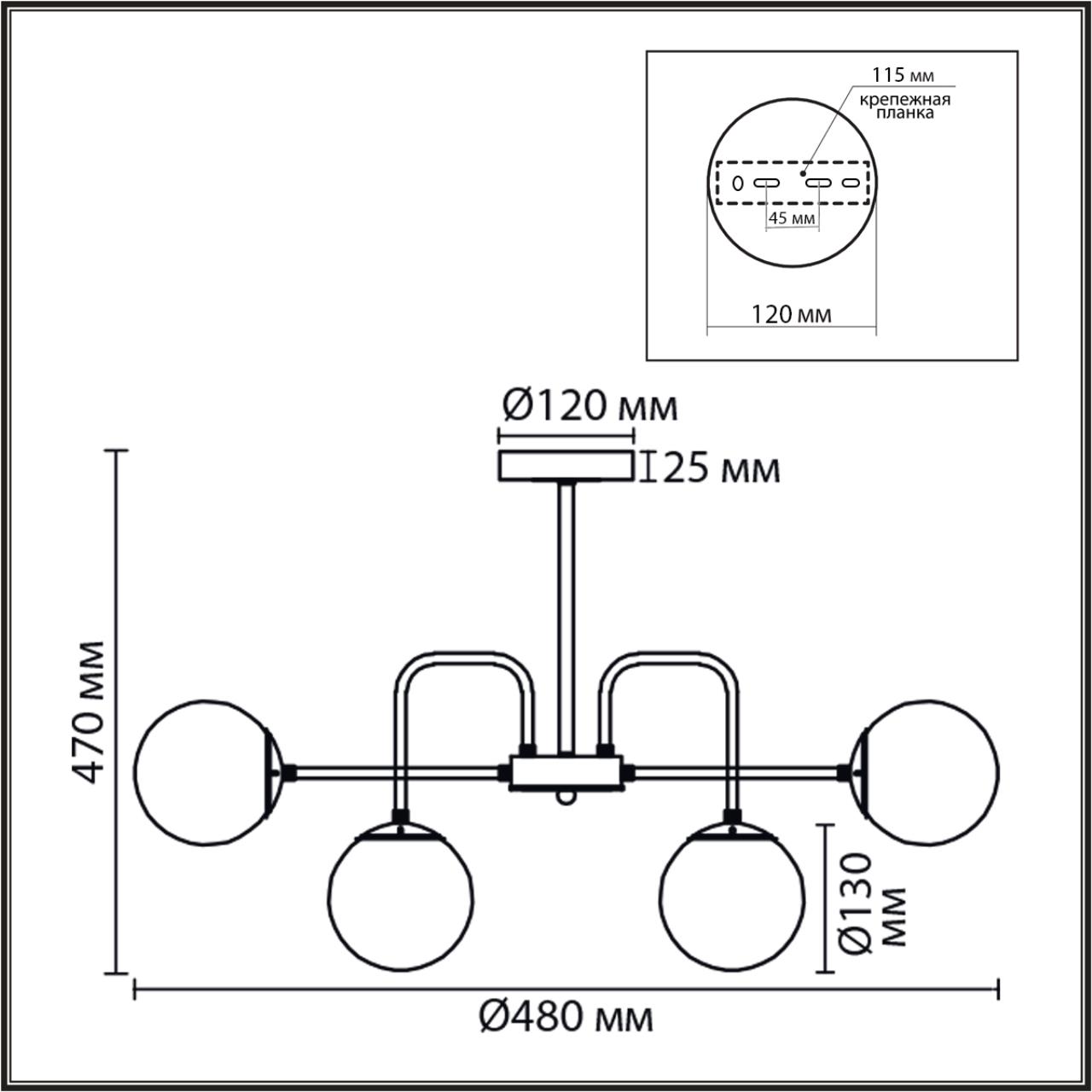 - Форма плафона: Шар