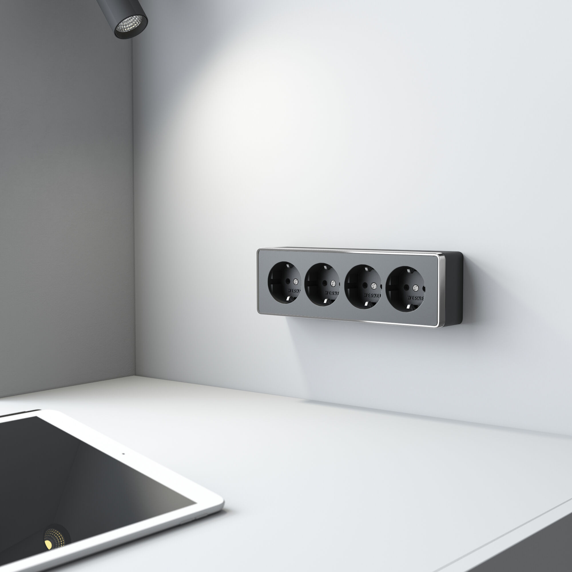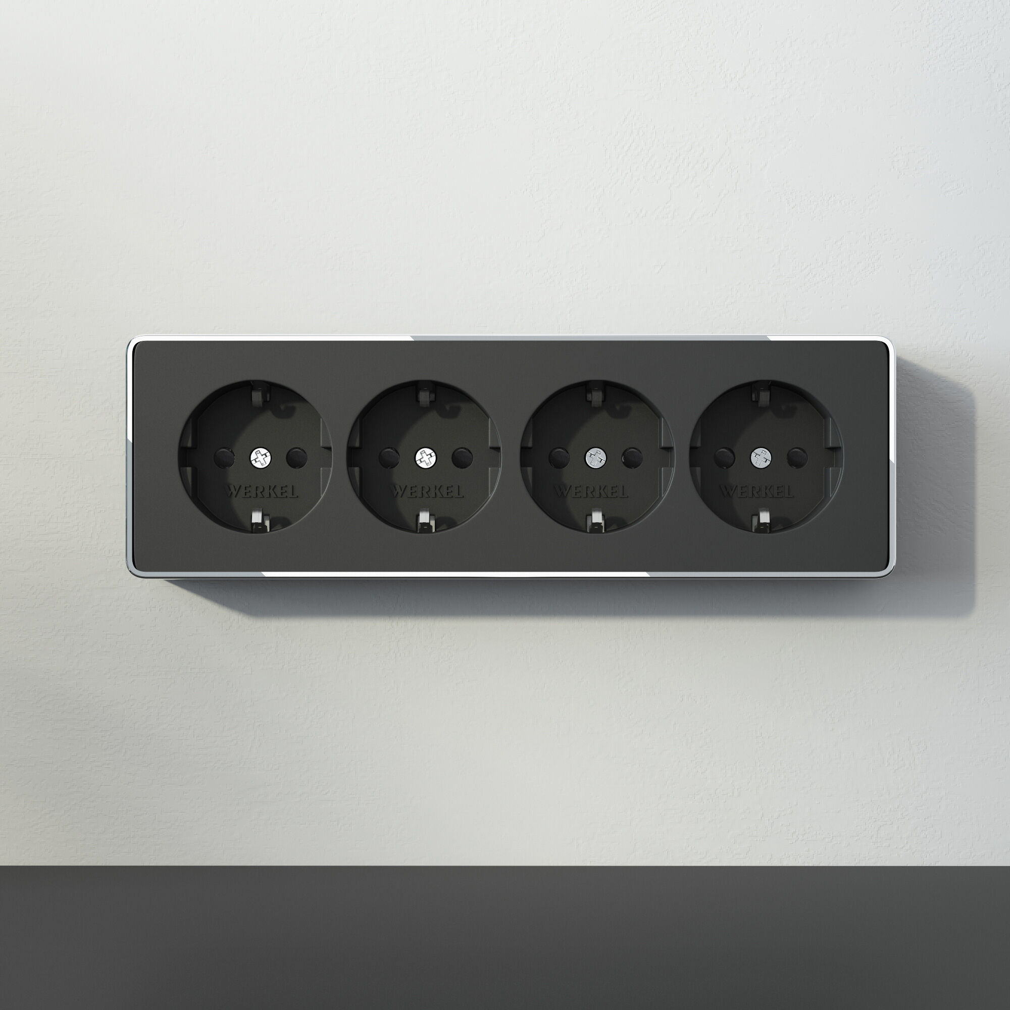 Купить "Розетка четверная с заземлением и шторками Werkel Gallant W5072258 черный/хром"