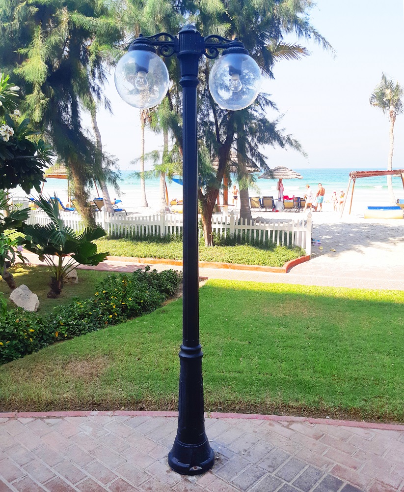Садово-парковый фонарь FUMAGALLI серии GLOBE 250, модель GLOBE 250/GIGI/BISSO 2L. Парковый торшер, столб GIGI с двумя уличными фонарями GLOBE 250 на малых консолях BISSO. Используются для архитектурного и ландшафтного освещения в стиле "классика". Место установки столбиков освещения - парковые дорожки, cкверы, садовые участки, тротуары, а так же ландшафтные и архитектурные объекты. Изготовлены в Италии, по уникальным технологиям "FUMAGALLI" из современного композитного полимера RESIN. Этот материал в 5 раз прочнее металла, не ржавеет, не окисляется, не выгорает на солнце, его не нужно красить. Все светильники пыле-влаго защищены по стандарту IP55 (Пыленепроницаемые, защита от водяных струй с любого направления). В комплекте идут крепежи и закладные элементы. Рассеиватель выполнен из антивандального, не мутнеющего и не горючего PMMA (ПолиМетилМетаАкрилат). Срок службы светильника - не менее 20 лет. Температура использования от -60 до +90. В серии GLOBE 250 есть фонари в настенном (BISSO/GLOBE 250, OFIR/GLOBE 250, MIRRA/GLOBE 250, PORPORA/GLOBE 250) подвесном (SICHEM/GLOBE 250) и наземном исполнении (IAFAET.R/GLOBE 250, ALOE.R/GLOBE 250, ARTU/GLOBE 250, GIGI/GLOBE 250, RICU/GLOBE 250, RICU/ISSO/GLOBE 250 1L, RICU/ISSO/GLOBE 250 2L, RICU/ISSO/GLOBE 250 3L) со столбами разной высоты, с разным количеством и конфигурацией голов. Консоли настенных фонарей и кронштейны светильников на столбах освщения могут устанавливаться вверх/вниз. Столбы выше 150 см имеют в основе мощную стальную трубу с двойной оцинковкой. При заказе требуется выбрать цвет корпуса, цвет плафона и тип патрона. По стилю и дизайну серия уличных светильников GLOBE 250 похожа на светильники большого размера GLOBE 400 и на светильники среднего размера GLOBE 300.