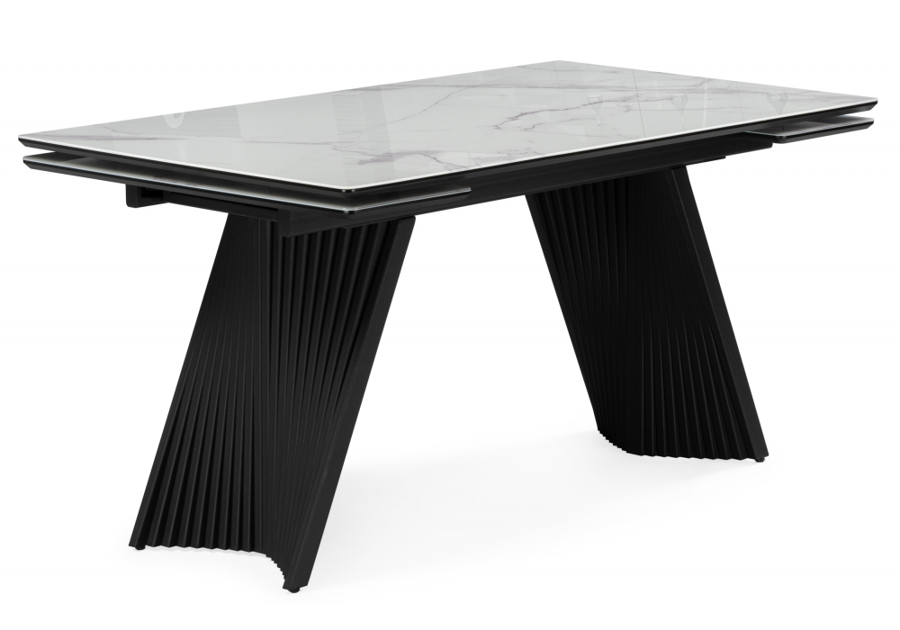 Купить "Стол стеклянный раскладной 140(200)х80 Woodville Вейв кристл белый мрамор / черный 625993"