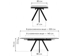 Керамический стол раскладной 140 (200) х 80 Woodville Мэриан snow alpin white / черный 625721