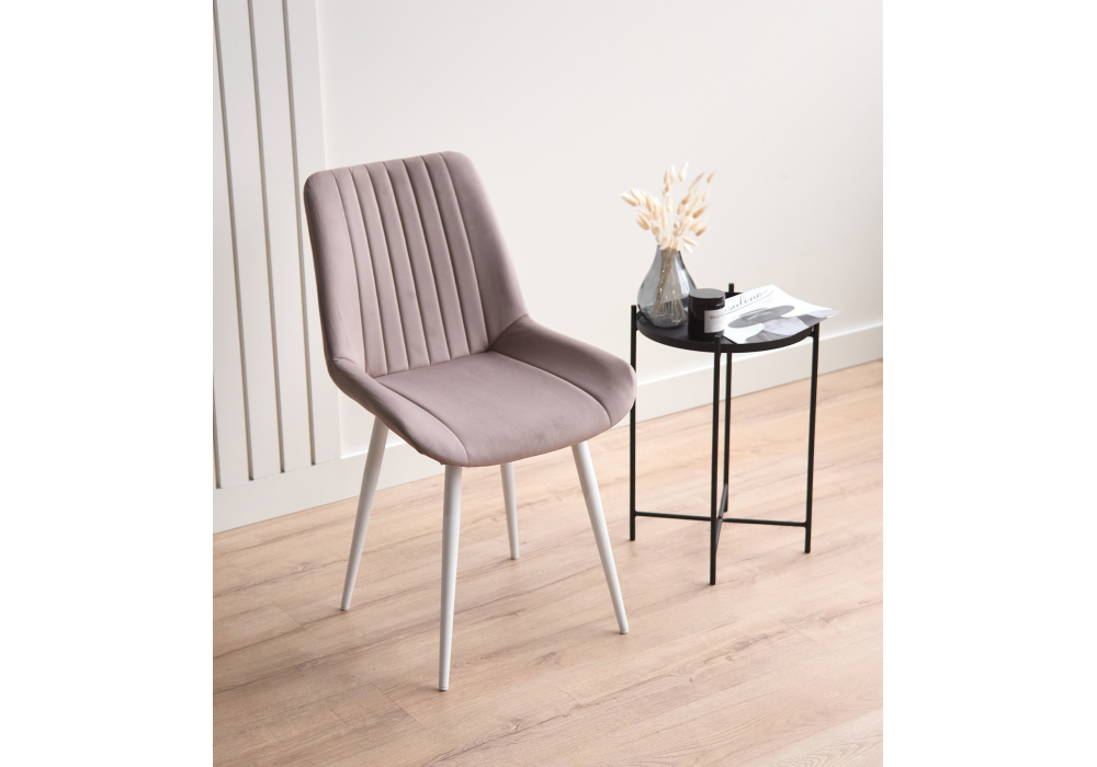 Материал каркаса - металл; Материал сиденья - велюр; Материал обивки - велюр; Цвет ножек - белый; Ширина - 50; Глубина - 56; Высота - 82; Ширина сиденья - 47; Глубина сиденья - 42; Высота сиденья - 48;