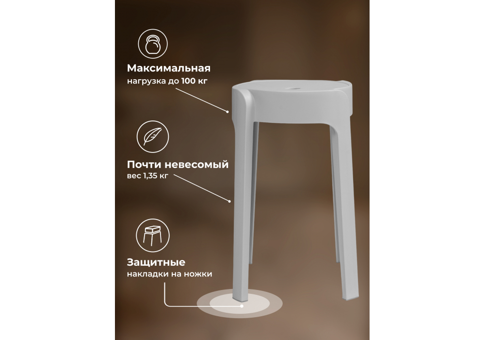Материал каркаса - пластик; Материал сиденья - пластик; Материал обивки - пластик; Ширина - 28; Глубина - 28; Ширина сиденья - 26; Глубина сиденья - 26; Высота сиденья - 45;
