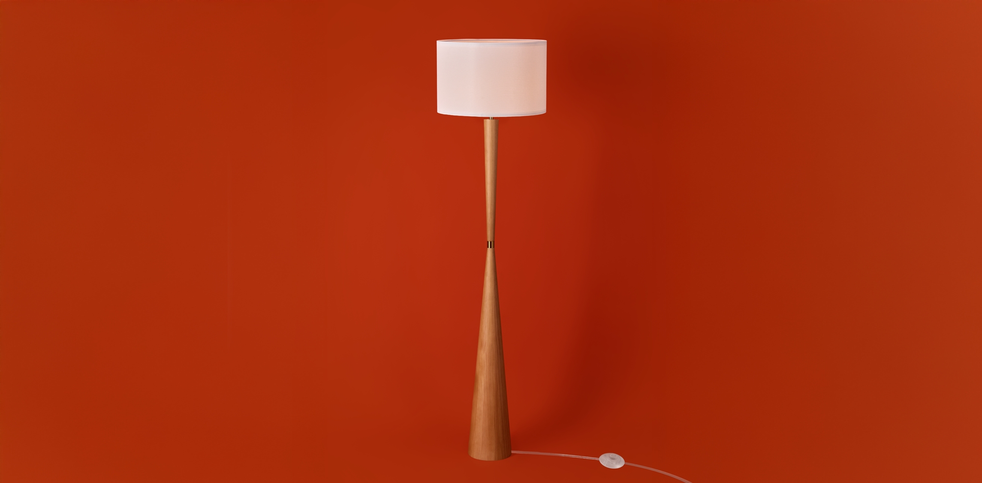Арматура — металл. Деревянное разборное основание. Тканевый абажур белого цвета. Источник света — лампа E27 (не в комплекте).