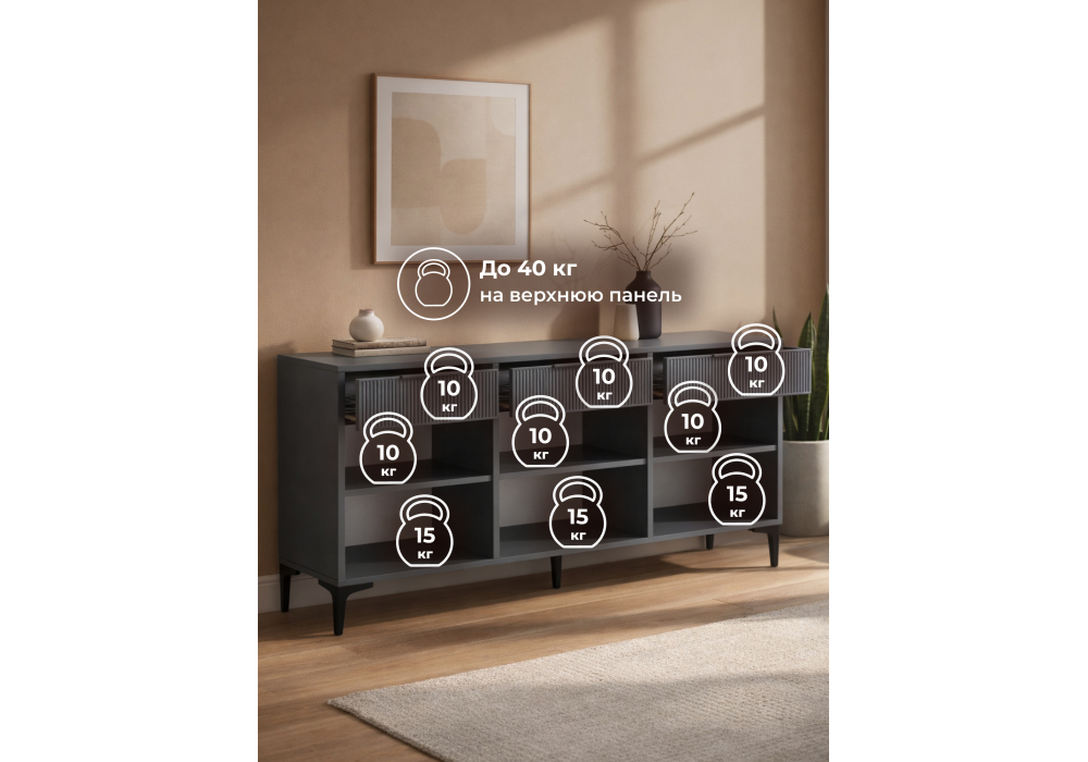 Купить "ТВ-тумба Woodville Иадама 3-ств. графит / графит софт 674704"