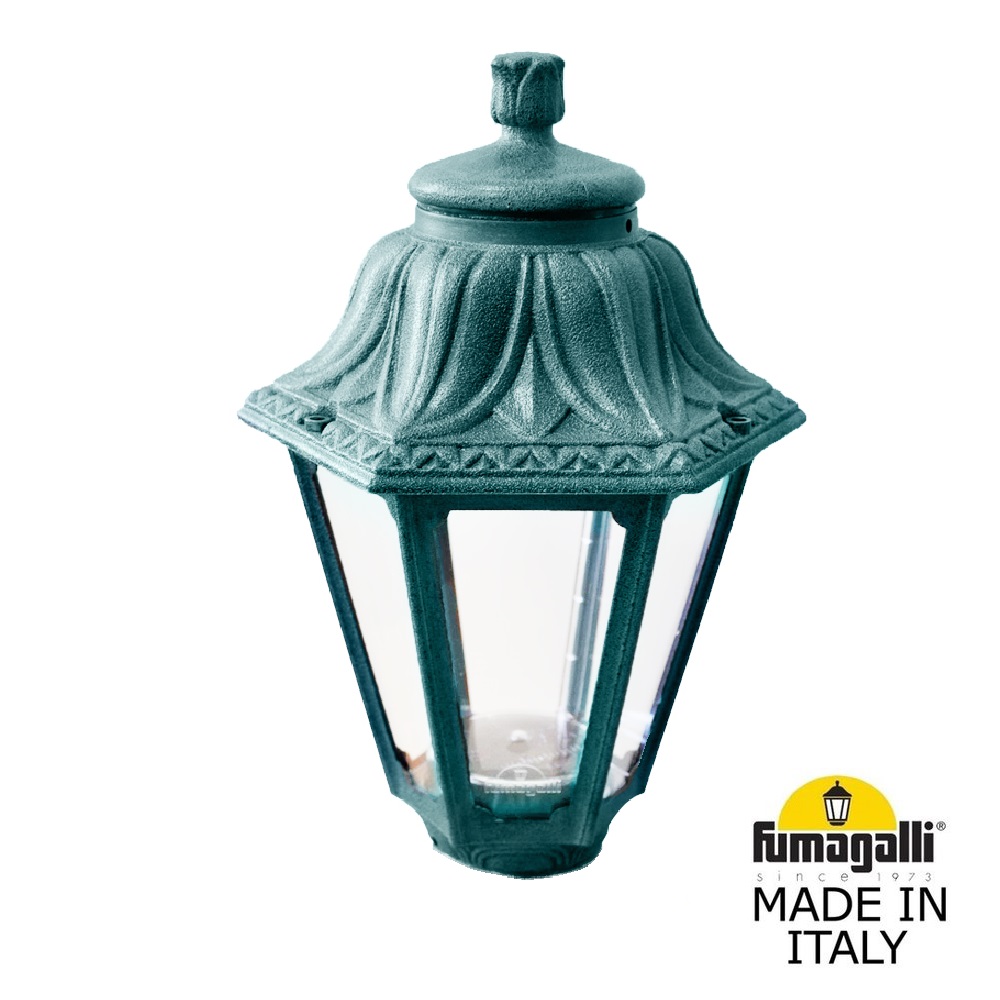 Уличные фонари на столб FUMAGALLI серии ANNA, модель ANNA. Только фонарь (голова), посадочный диаметр D=60мм., устанавливаются на столб или трубу соответствующего диаметра. Используются для архитектурного и ландшафтного освещения в стиле "классика". Место установки уличных светильников - опоры освещения, столбы заборов, ландшафтные композиции в парках и скверах. Изготовлены в Италии, по уникальным технологиям "FUMAGALLI" из современного композитного полимера RESIN. Этот материал в 5 раз прочнее металла, не ржавеет, не окисляется, не выгорает на солнце, его не нужно красить. Все светильники пыле-влаго защищены по стандарту IP55 (защита от пыли, защита от струй воды, падающих под любым углом). Рассеиватель выполнен из антивандального, не мутнеющего и не горючего PMMA (ПолиМетилМетаАкрилат). Срок службы светильника - не менее 20 лет. Температура использования от -60 до +90. В серии ANNA есть фонари в настенном (BISSO/ANNA, PORPORA/ANNA) подвесном (SICHEM/ANNA, SICHEM/ANNA 3L) и наземном исполнении (IAFAET.R/ANNA, ALOE.R/ANNA, ARTU/ANNA, GIGI/ANNA, RICU/ANNA, RICU/ISSO/ANNA 1L, RICU/ISSO/ANNA 2L, RICU/ISSO/ANNA 3L) со столбами разной высоты, с разным количеством и конфигурацией голов. Консоли настенных фонарей и кронштейны светильников на столбах освщения могут устанавливаться вверх/вниз. Столбы выше 150 см имеют в основе мощную стальную трубу с двойной оцинковкой. При заказе требуется выбрать цвет корпуса, цвет плафона и тип патрона (Е-27 или LED GX-53). Возможен светодиодный вариант. По стилю и дизайну серия уличных светильников ANNA похожа на светильники среднего размера серии RUT и на светильники большого размера серии NOEMI. По размеру ANNA относится к малым светильникам как серия SABA и GLOBE 250.