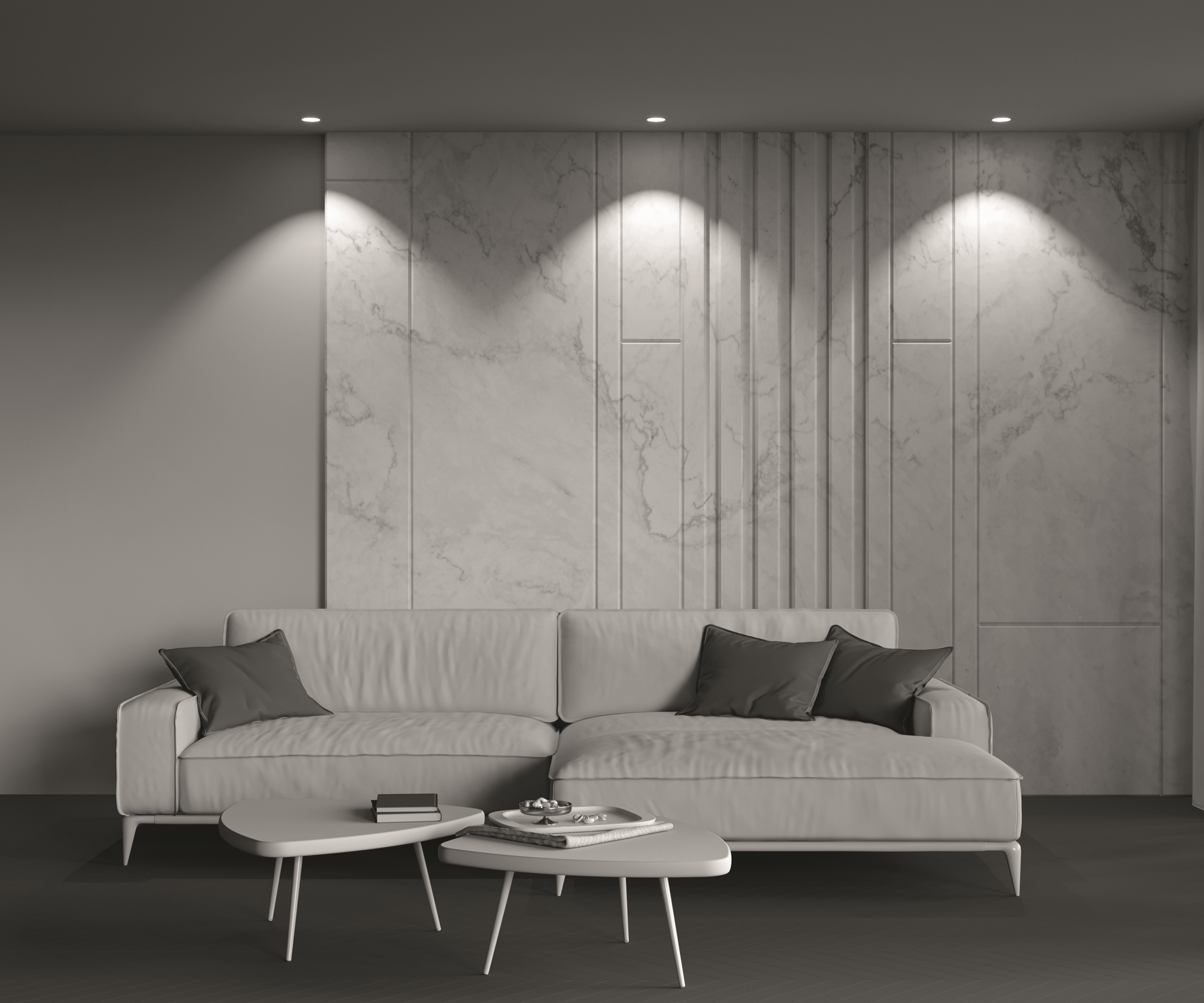 Металлический корпус. Оттенки — черный, белый. Геометрическая форма: цилиндр, квадрат. Круглая форма представлена в трех размерах. LED-источник света. Два варианта цветовой температуры: 3000К и 4000К. Есть модели с диммированием по протоколу Triac.