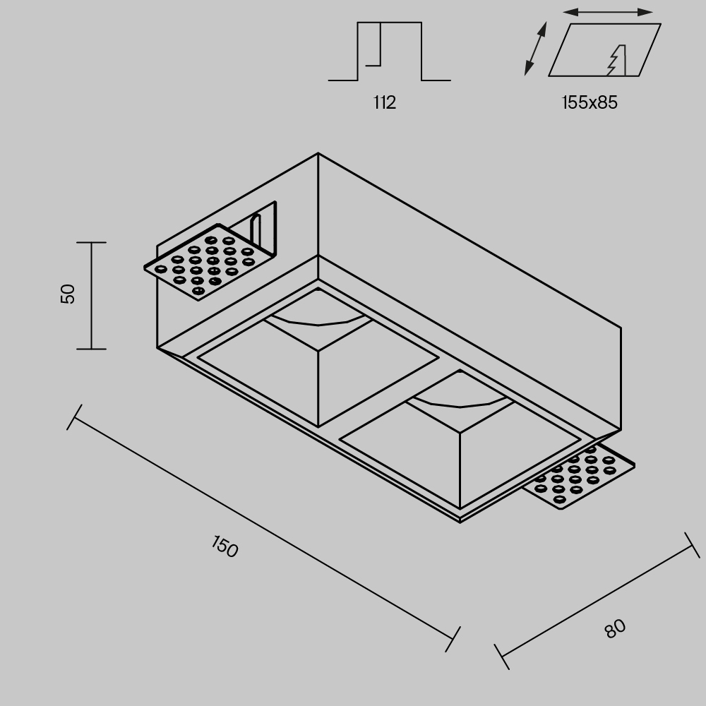 - Диаметр врезного отверстия: 155*85 мм
