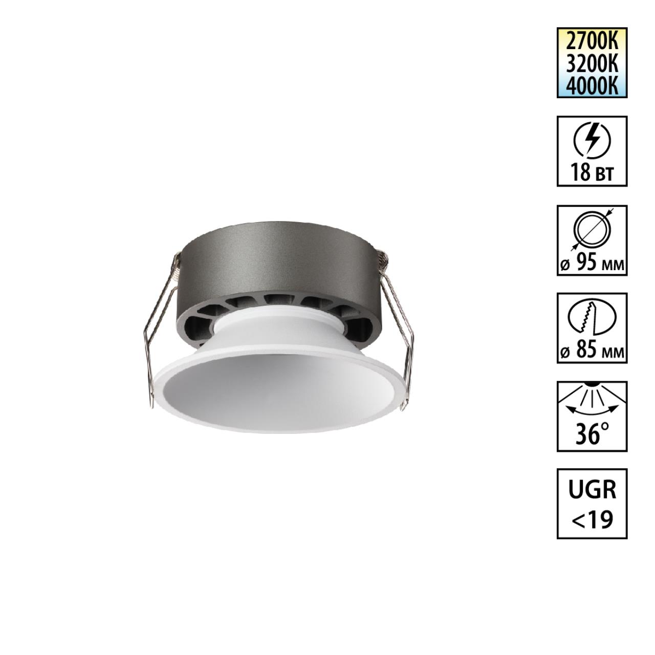 Купить "Встраиваемый светильник светодиодный с переключателем цветовой температуры Novotech NOVA 359854 белый"