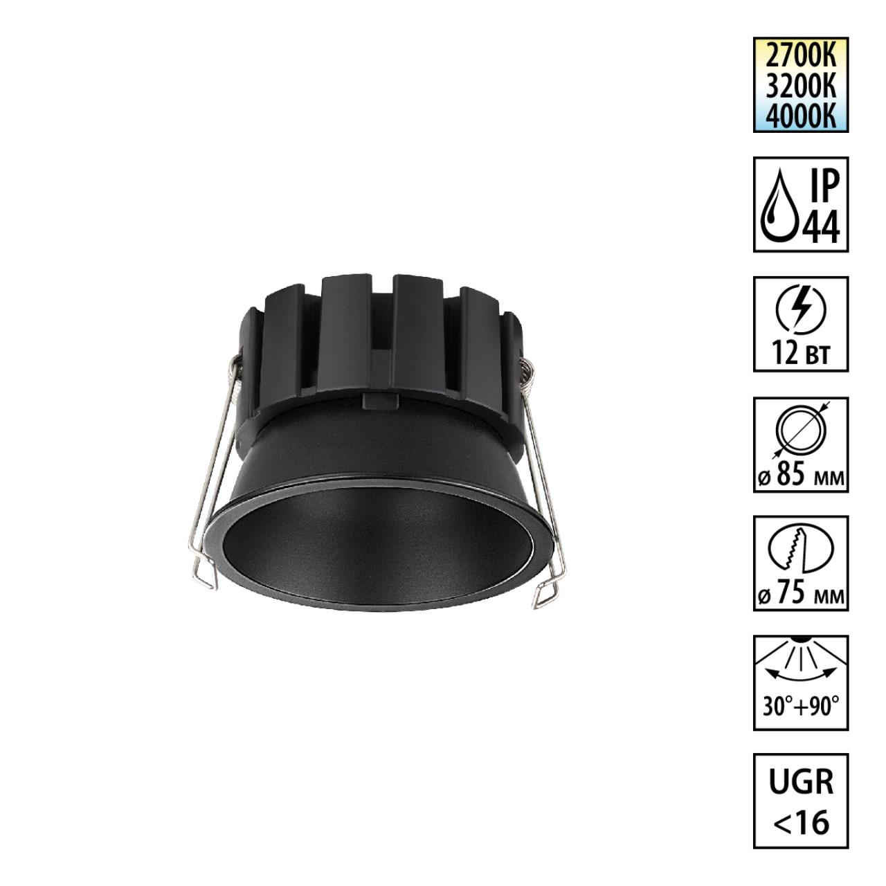 Встраиваемый светильник светодиодный с переключателем цветовой температуры Novotech SOLIS 359858 черный в Калининграде