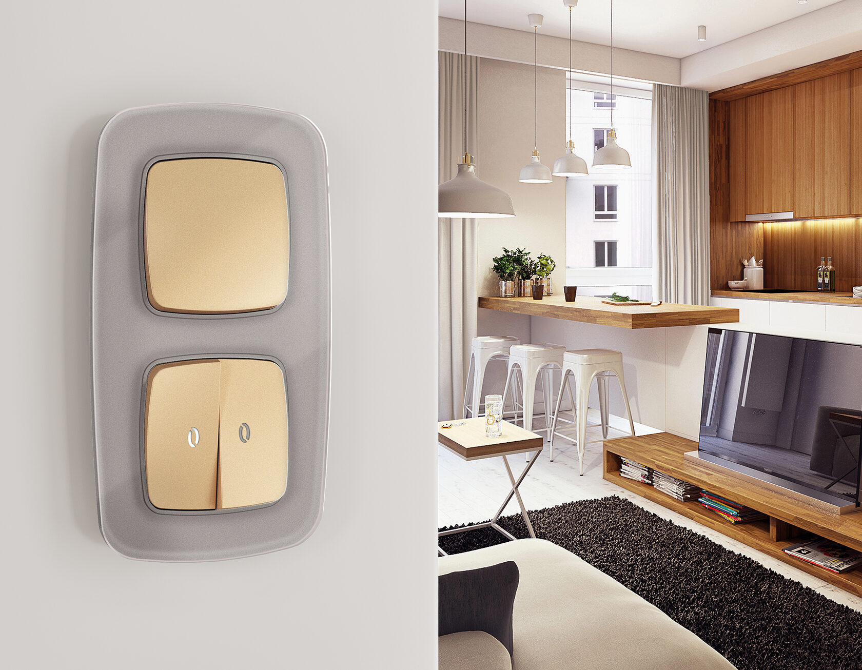 Многогранный ассортимент Ambrella Volt включает в себя механизмы, лицевые панели и рамки, а также комплекты, доступные в различных цветовых решениях. Продукция представлена в модульном исполнении, что позволяет гибко настраивать внешний вид и функциональность. Вам будет легко заменить лицевую панель, рамку или механизм, найдя идеальное сочетание цветов.